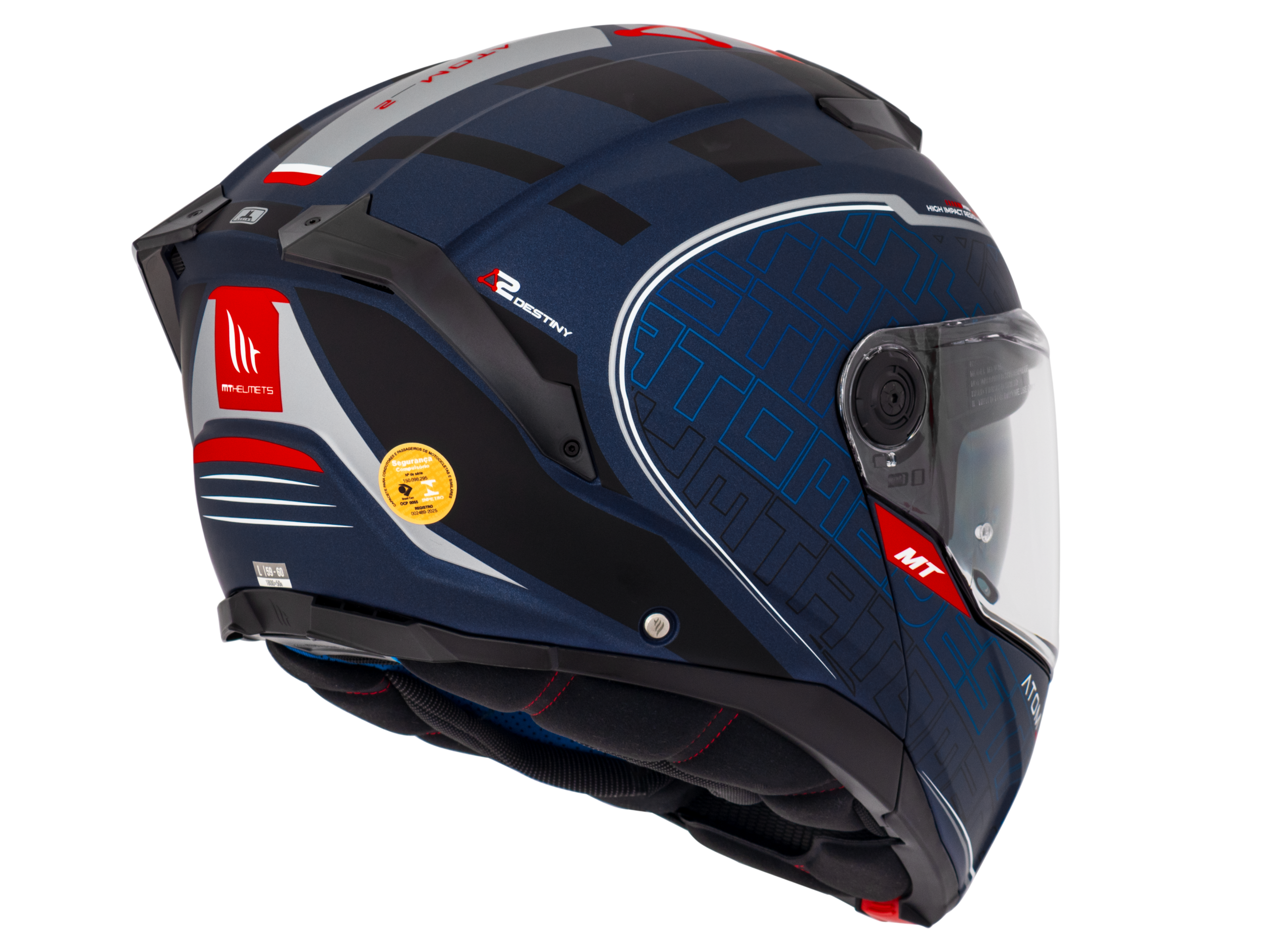 O Capacete Atom 2SV Destiny possui design inovador e funcionalidade de ponta, com aberturas que otimizam a ventilação e um spoiler integrado.