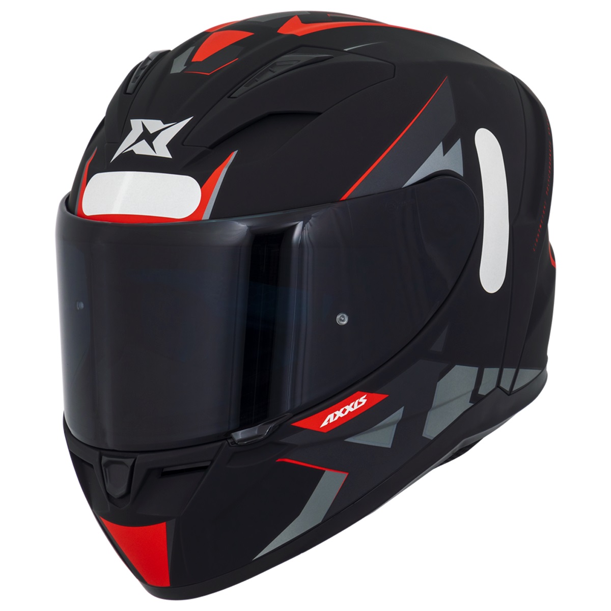 Capacete AXXIS Segment FranticB-5 – Fosco , certificações ECE 22.06, DOT e Inmetro, construção em HIRP com aerofólio integrado para maior estabilidade, ventilação eficiente, forro removível e lavável, viseira óptica de 2,2 mm compatível com Fogoff, peso aproximado de 1.600 g.