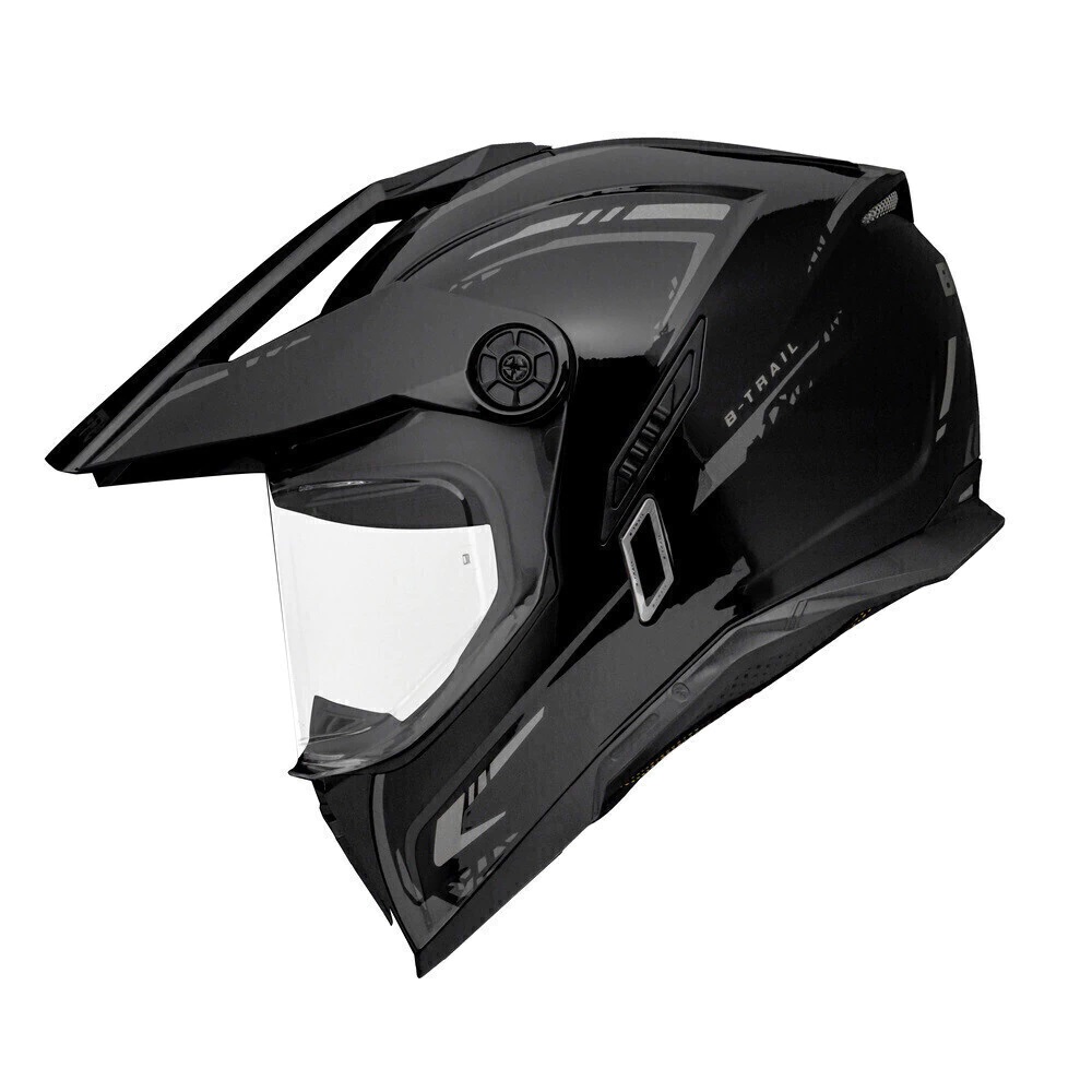 apacete B-Trail robusto e aerodinâmico para uso ON e OFF Road. Além disso, oferece alta resistência, viseira com proteção UV, ventilação eficiente e máximo conforto na pilotagem.