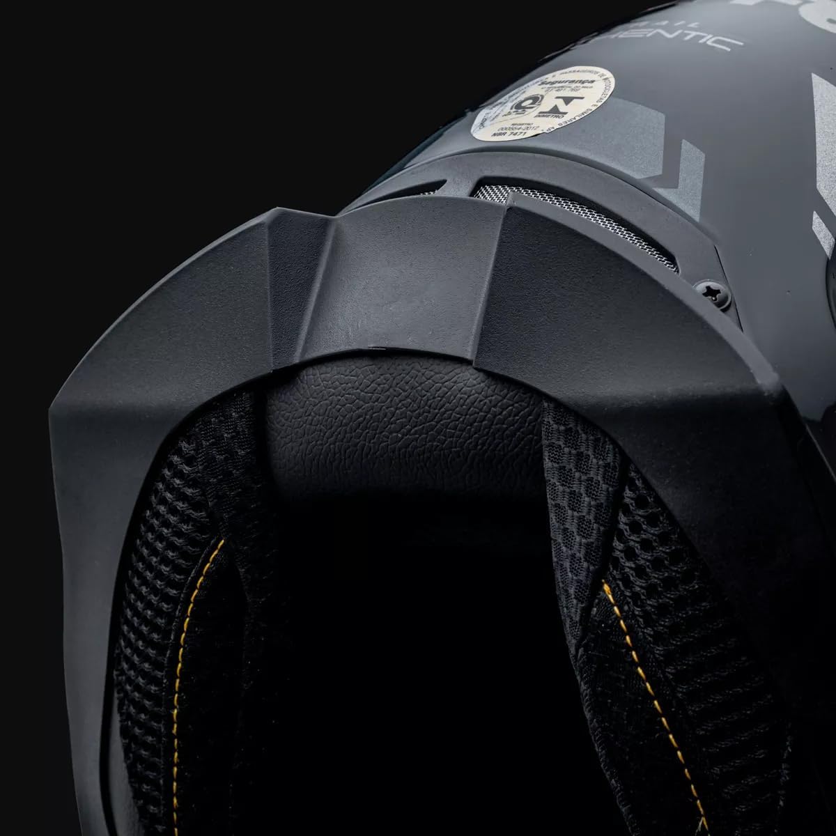 O B-Trail é sinônimo de aventura. É para aqueles que encaram cada terreno como um convite e cada desafio como uma oportunidade. Capacete com múltiplas configurações que permite ao piloto personalizá-lo conforme suas necessidades. Características: Casco de alta resistência produzido com tecnologia HEAP – High Energy Absorption Polymer. Aerodinâmico e pala alongada com maior abertura, auxiliando o fluxo do vento. Mais resistente, proporcionando maior estabilidade em altas velocidades, ON e OFF Road. Filtro à poeira e resíduos: entrada de ar revestida com Expanded Aluminium Alloy. Design robusto com guarnição de pescoço em material emborrachado para acondicionamento em superfícies diversas. Sistema Air Exchange: revestimento interno que auxilia em excelente circulação de ar e evaporação da umidade, com materiais de múltiplas densidades resistentes à terra, chuva e condições extremas, removível e lavável. Sistema Easy Fit, abertura que proporciona conforto para o uso de óculos, com encaixe perfeito das hastes no interior do capacete. Viseira em Policarbonato de alto impacto, 2.2mm com borda estrutural de 3mm, antirrisco e proteção UV, preparada para anti-fog(Pinlock). Sun Visor(Viseira Solar) de ampla cobertura facial e acionamento lateral de fácil manipulação e deslizamento suave que proporciona conforto na pilotagem. Capacete com narigueira e bavete. Cinta jugular com fecho micrométrico. Acompanha adesivo de tipo sanguíneo. Peso: 1800g. Certificado conforme Portaria 456 INMETRO e NBR 7471 conforme Portaria 333 INMETRO.