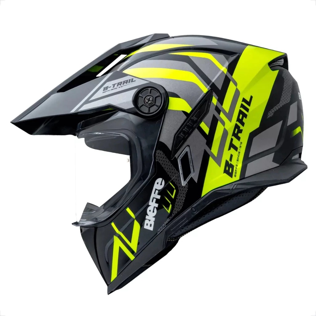 Capacete Moto Bieffe B-Trail Defender Preto/Amarelo Com Óculos Interno