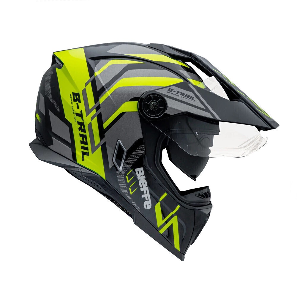 Bieffe B-Trail Defender, robusto para ON e OFF Road, com alta resistência, viseira com proteção UV e ventilação eficiente para mais conforto na pilotagem.