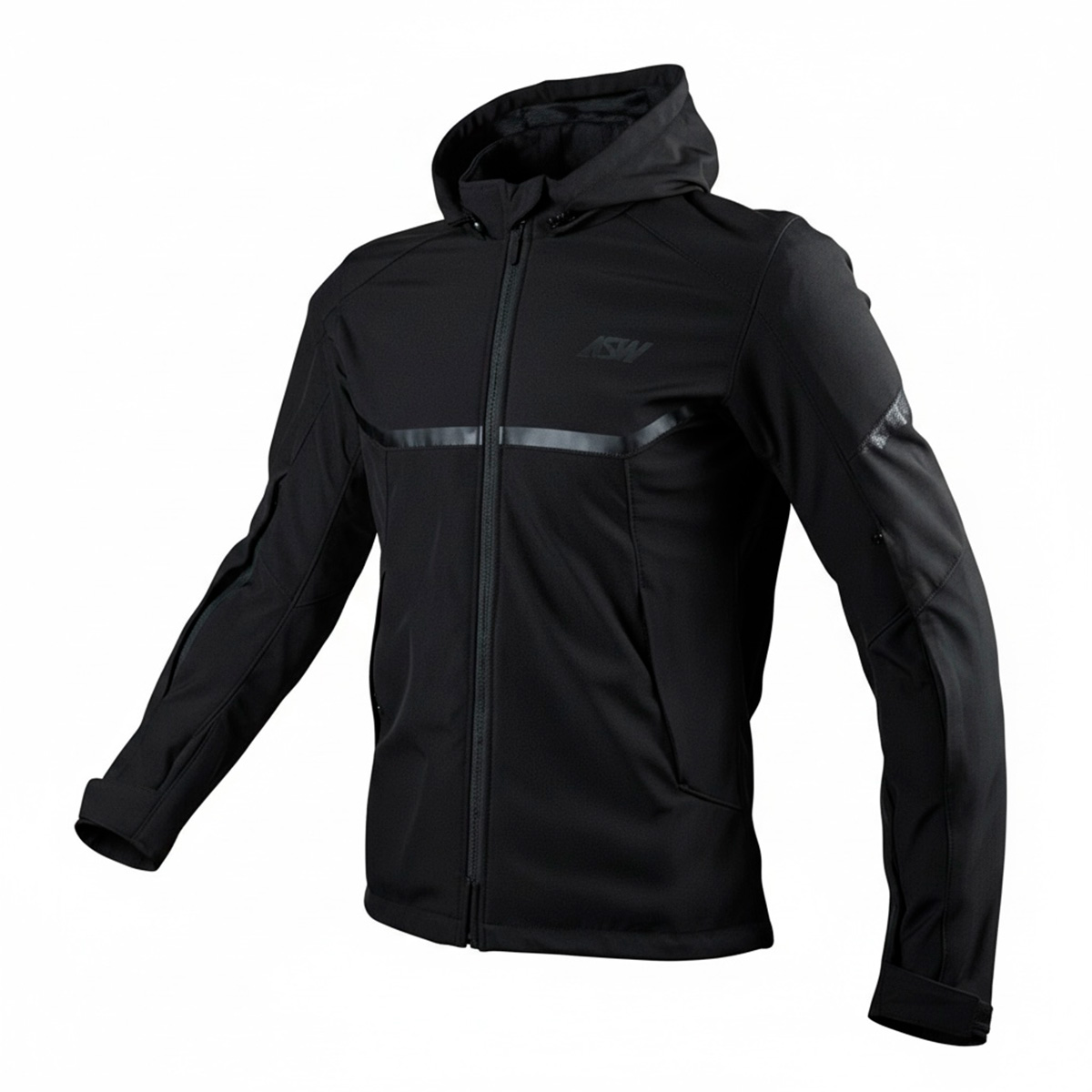 Jaqueta ASW Berlin Preta com proteção, conforto e estilo urbano. Tecido resistente, ventilação inteligente e capuz removível.